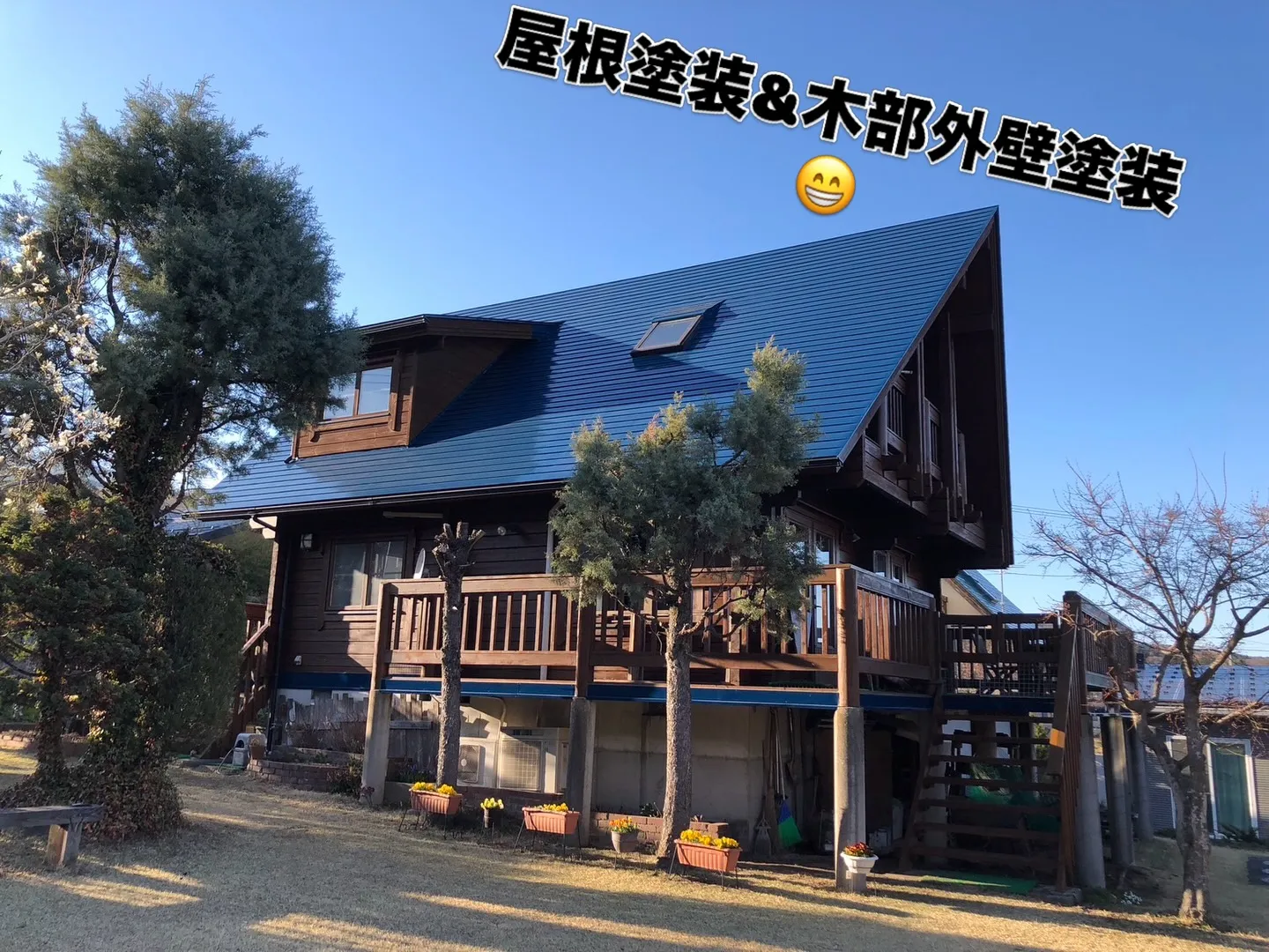 こんにちは、株式会社S-rowです!今日も元気に塗装の魔法をお届けします✨今回は屋根と外壁の塗装事例をご紹介。屋根はフッ素塗料、ガイソールーフガードネオFで、輝くような仕上がりにしました🌟。このフッ素塗料、なんと耐久性抜群で、長く美しさを保ちます!一方の外壁は木部ということで、特別な撥水性のある木部塗料を使用しました。こちらも長持ち間違いなしです🌿!